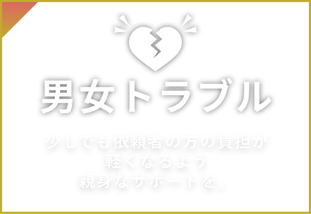 男女トラブルは、依頼者の方にとって、非常に精神的負担が重い案件です。